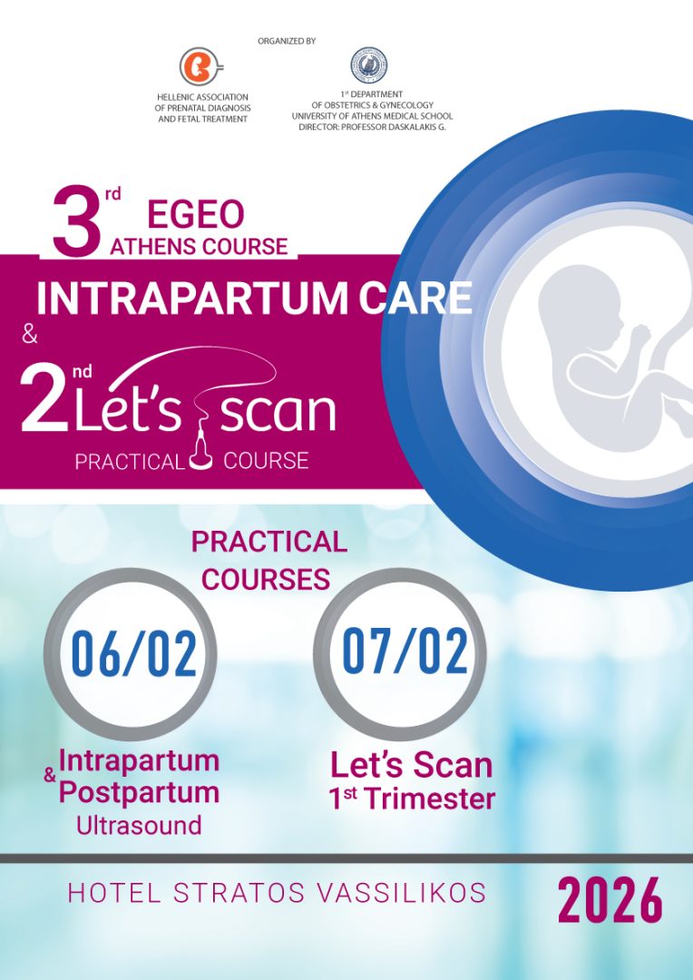 Θα θέλαμε να σας ενημερώσουμε για τη διεξαγωγή του 3rd EGEO Athens Course – Intrapartum Care & 2nd Let’s Scan Practical Course, που θα πραγματοποιηθούν 7&8 Φεβρουαρίου 2026 στο ξενοδοχείο Στράτος Βασιλικός